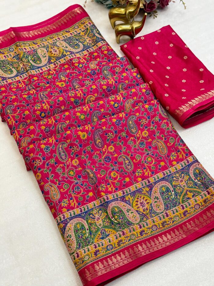 • Beautiful Printed Tussar Silk Saree with Weaving Jacquard border