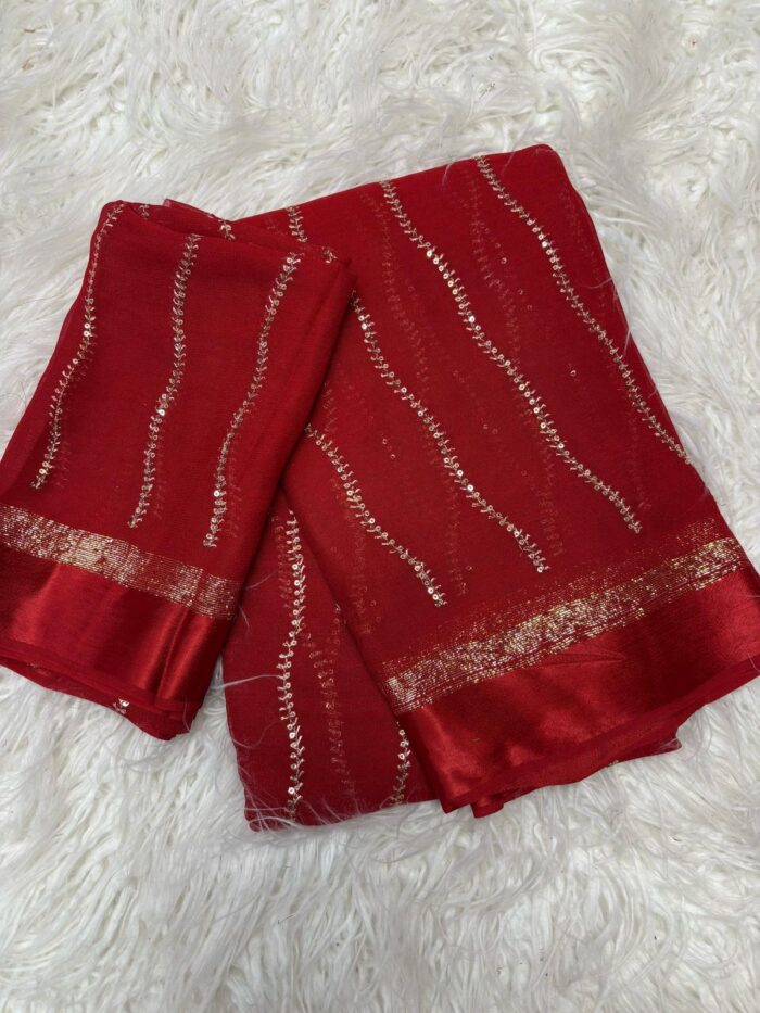 Pure Viscose Georgette Saree With Fancy Sequins Work Lahriya & Satin Border with same colour work blouse