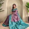 Dual tone silk sarees with all over zari weaves, contrast pallu