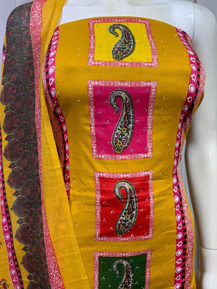 Bottom: Pure Cotton Jaam Satin (2.50 mtrs)